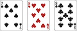 | Thùng | Ba lá bài đồng chất nhưng không cùng một chuỗi số | ![]() |